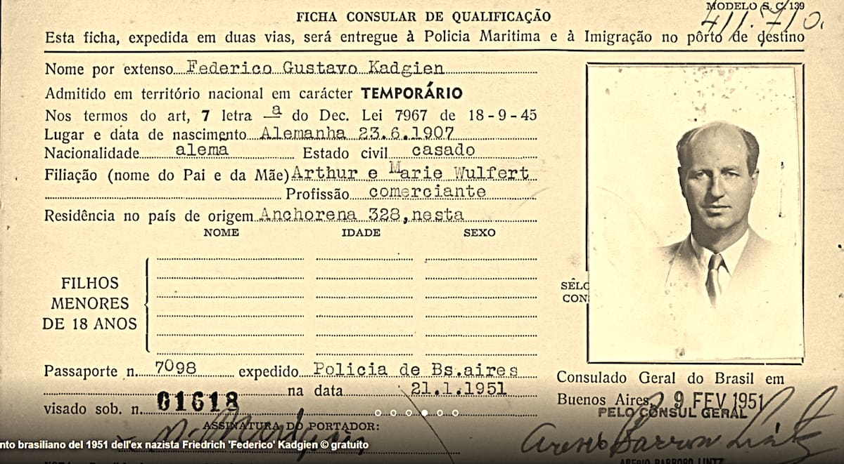 En cambio Kadgien andaba por Buenos Aires a bordo de un Mercedes Benz con chofer. Se presentaba como lo que era: un empresario importante, ligado a la industria del acero y las armas, y mientras otros viejos nazis huían, eran ejecutados o se cambiaban el nombre, él recibía el reconocimiento del círculo rojo criollo.