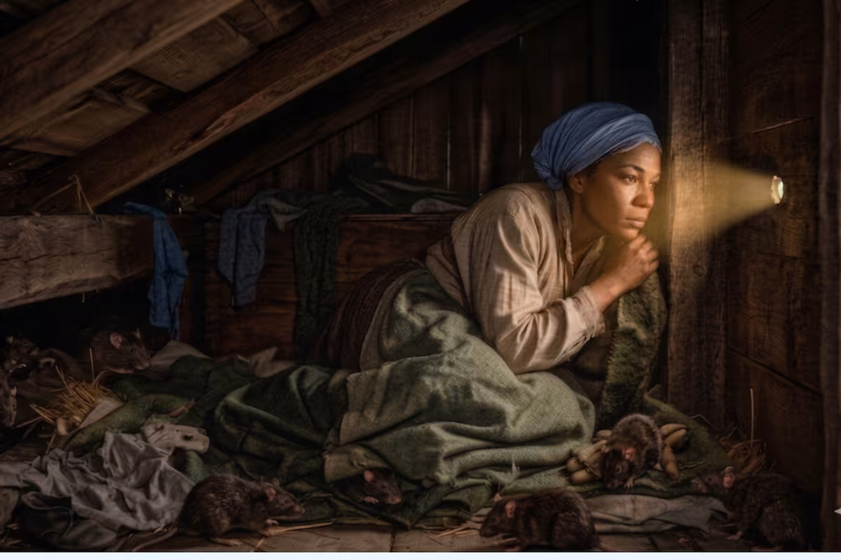 El cuarto donde vivió los siguientes 7 años de su vida no tenía más de dos metros de largo y un metro de alto. Estaba completamente oscuro. Las ratas escalaban su cuerpo constantemente. No tenía lugar para moverse, ni pararse. Un tiempo después de su “encierro de libertad”, Harriet hizo un pequeño orificio en la pared, específicamente de poco más un centímetro, para poder ver a sus niños jugar en la calle. Ser vista podía significar la vuelta a la esclavitud, o incluso la muerte, así que solo se reservó pocas salidas, a altas horas de la noche, para asearse y ejercitar su cuerpo entumecido.