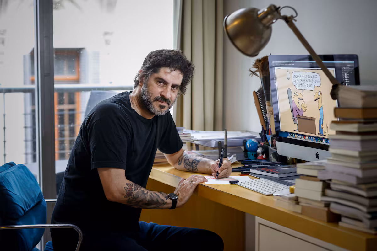 –La historieta goza de buena salud, pero el humor gráfico no, parecería estar muriendo lentamente. Yo no veo nuevas generaciones de humoristas gráficos como éramos nosotros con respecto a la generación de mi viejo. Incluso, hubo una generación intermedia entre la mía y la de él, que fue la de Maitena, REP, Langer. Es decir que, cada diez años, la Argentina daba una buena cantidad de dibujantes y humoristas gráficos. Y bueno, no veo que ahora esté esa generación atrás nuestro y eso me resulta un poco preocupante.